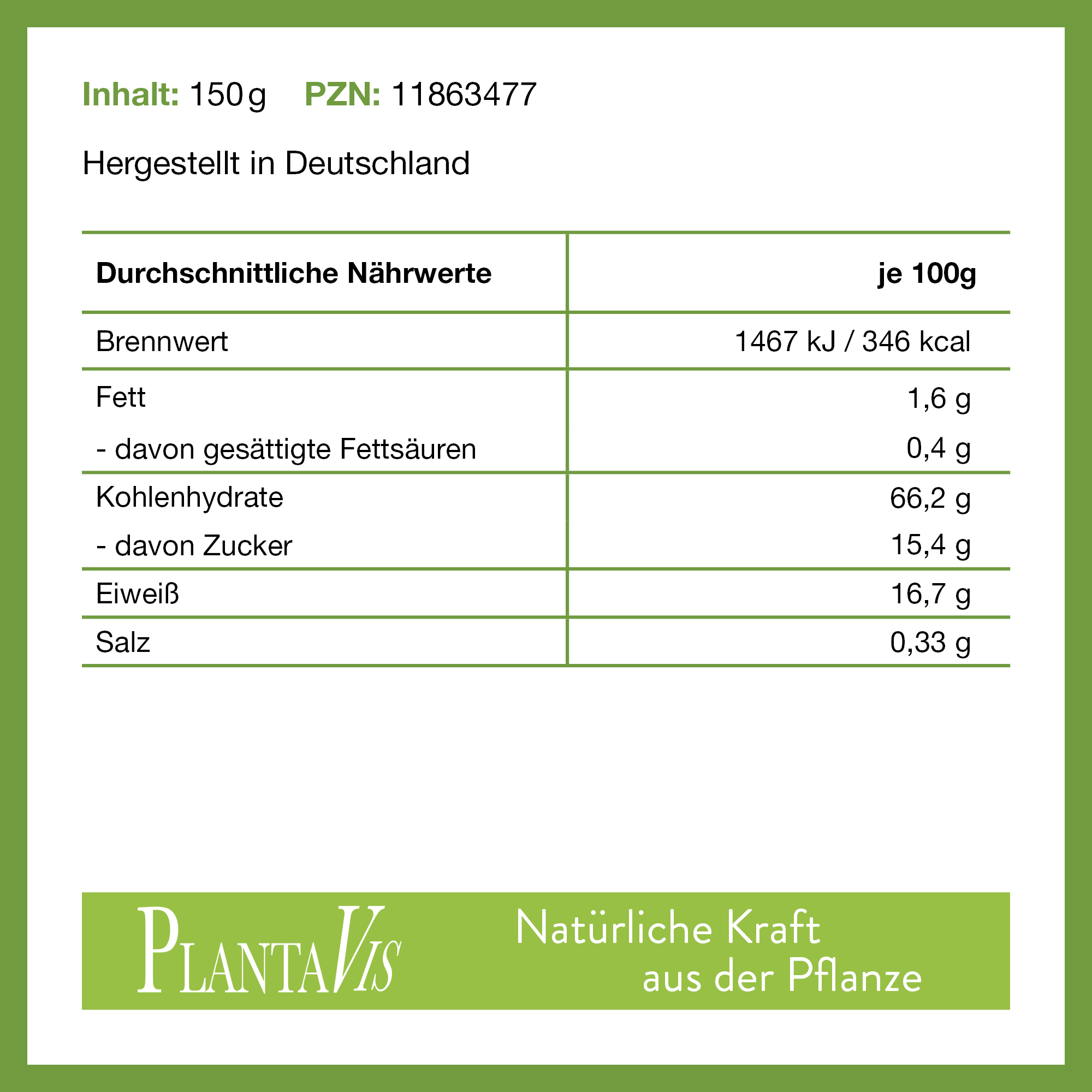 | Brennwert | 1467 kJ / 346 kcal |