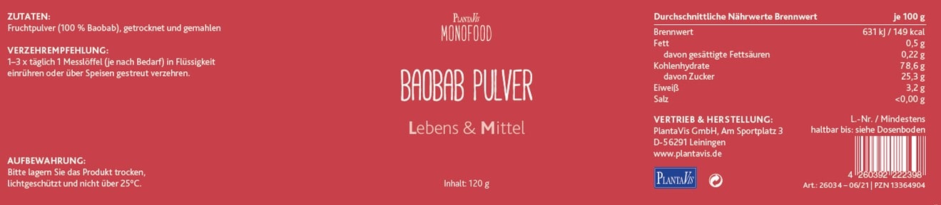 Das Fruchtfleisch dient als Grundlage zur Herstellung von Fruchtsäften, Süßigkeiten, Saucen oder Brei. Afrikaner bezeichnen den Baobab-Baum auch als „Apothekerbaum". Völlig zu Recht zählt Baobab zu den beliebtesten Superfoods.