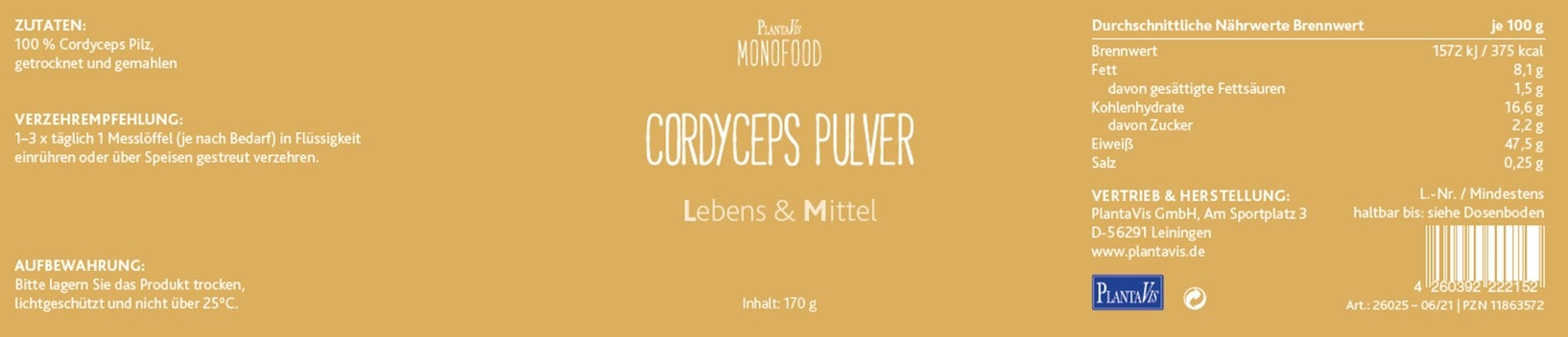 Weiterführende Links zu "Cordyceps Pulver 170g"