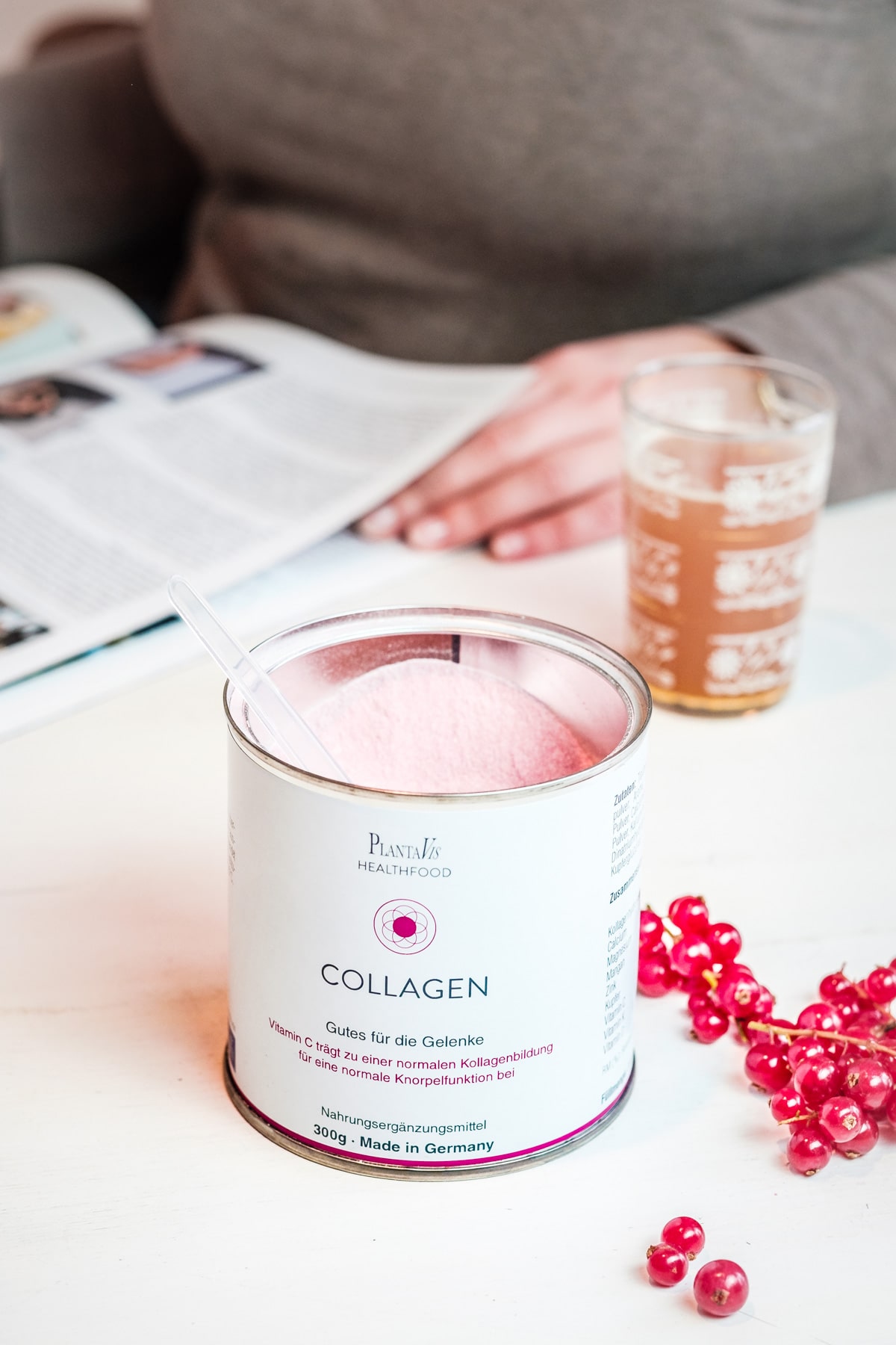 Bereits in der jahrhundertealten Volksmedizin wurden Suppen aus ausgekochten Knochen und Knorpeln zur Behandlung von Gelenkbeschwerden empfohlen. Der „Collagen Drink" als modernes Nahrungsergänzungsmittel ist dagegen im Handumdrehen zubereitet und damit effektiver einsetzbar, zumal er signifikante Mengen an Vitamin C*1 enthält.