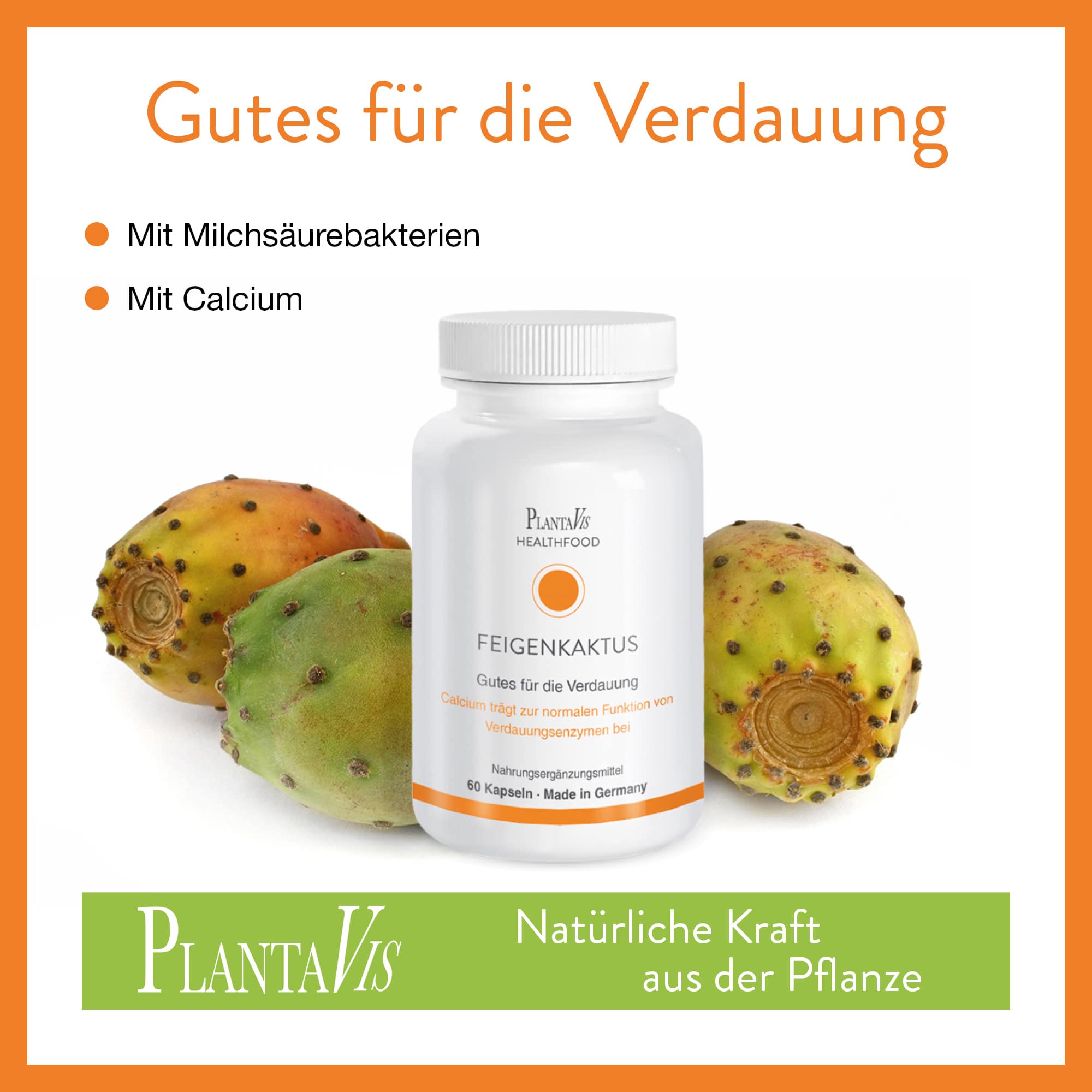 Kaktusfeigen schmecken köstlich und sind ein schnell verfügbarer Energiespender, auch für Sportler und bei geistiger Belastung. In Verbindung mit Leinsamen, Milchsäurebakterien, Vitamin C*1 und Calcium*2, das zur normalen Funktion von Verdauungsenzymen beiträgt, enthalten die Kapseln eine ebenso natürliche wie innovative Kombination zur Unterstützung der Verdauung.