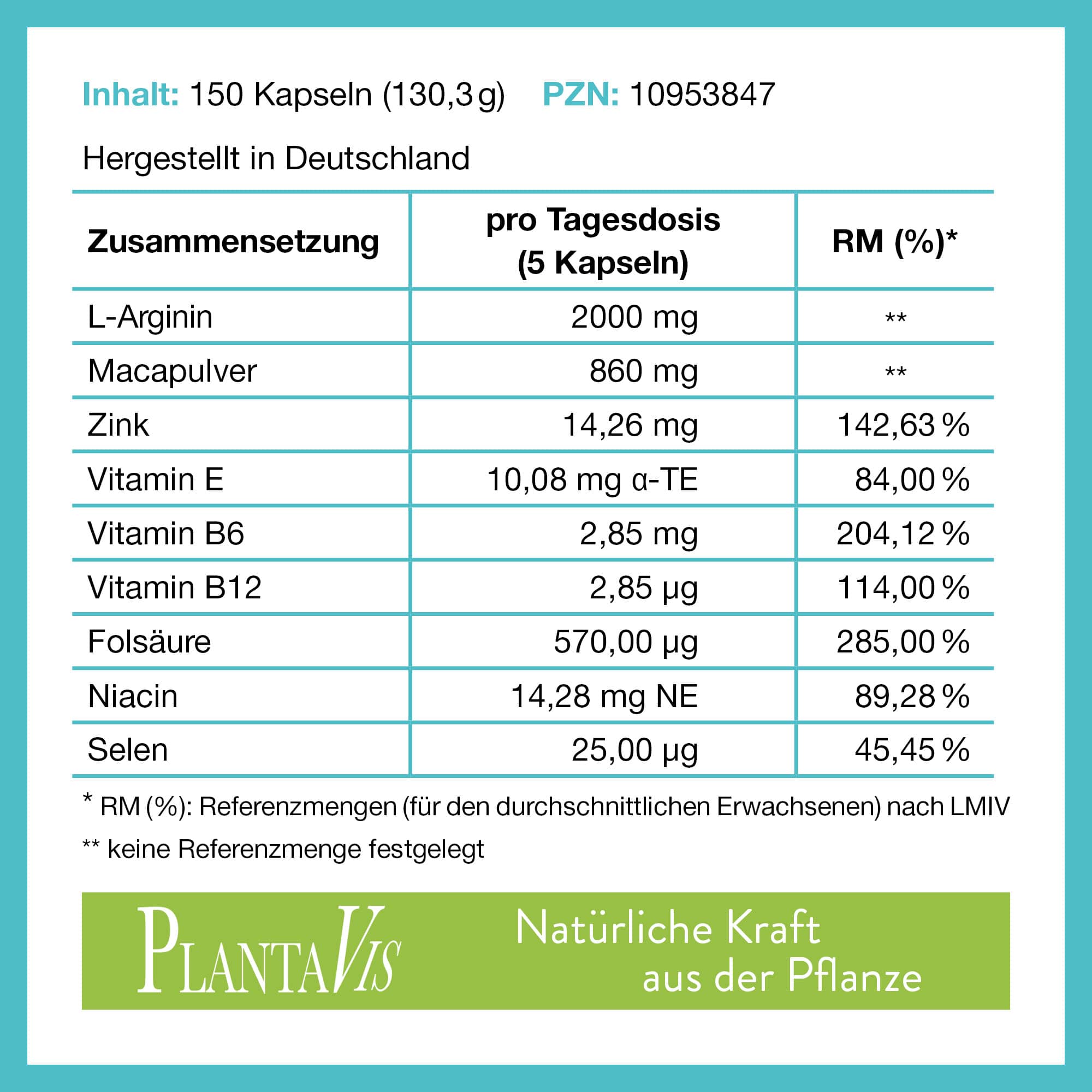 Weitere Bestandteile sind Macapulver, Vitamin E, Folsäure und Niacin.